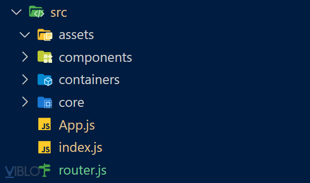 ./index.js: là file endpoint của dự án. Trong file này, bạn sẽ khởi tạo các thư viện mà dự án sẽ sử dụng, ví dụ như theme provider (styled-components, store(Redux, Apollo hoặc các thư viện khác) @material-ui), router (React Router) và component<App />../App.js: chứa các containers của toàn bộ dự án và<Router />../router.js: bao gồm<Switch />và các<Route />của dự án.