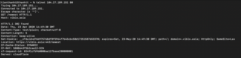 Okay, một khi chúng ta đã có địa chỉ IP của máy chủ (server) thì trình duyết sẽ có thể kết nối đến với nó. Cách mà trình duyệt kết nối với máy chủ thực sự khá thú vị. Xem nào để hiểu đơn giản hơn, bạn hãy tưởng tượng đến việc mở 1 kết nối giữa hai người đang nhấc điện thoại lên và quay số gọi cho nhau. Trong thực tế, chúng ta có thể kiểm tra thử bằng cách cài chương trình này trên máy tính, đó là telnet. Telnet cho phép bạn mở 1 kết nối "thô" (raw) với bất kỳ máy chủ nào. Ví dụ: telnet 104.27.189.151 sẽ cố gắng mở kết nối đến máy chủ mà chúng ta tìm thấy ở phía trên, trên cổng 80 (cổng 80 là cổng HTTP mặc định).