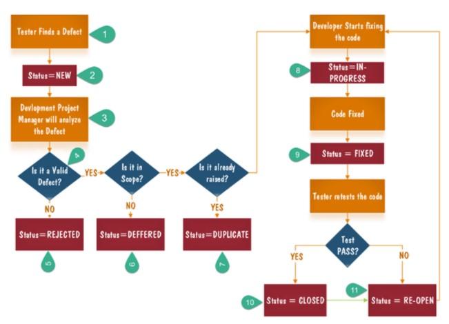 DEFECT LIFE CYCLE hoặc Bug Life Cycle là tập hợp các trạng thái cụ thể mà Bug trải qua trong toàn bộ vòng đời của nó. Mục đích tạo ra quy trình cho một vòng đời bug/defect là để những người chịu trách nhiệm cho bug/defect đó dễ dàng quản lý và thay đổi trạng thái cho đến khi bug/defect được loại bỏ hoàn toàn khỏi hệ thống.