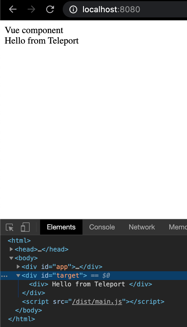 <Teleport to="#target">