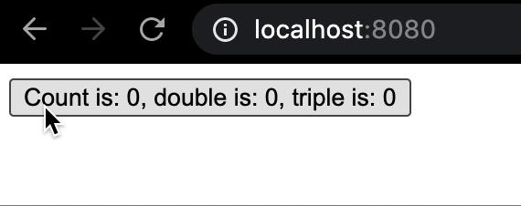 Count is: {{ state.count }}, double is: {{ state.double }}, triple is: {{ triple }}