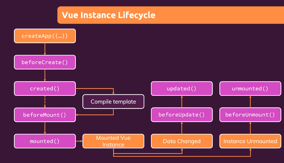 - beforeUnmount() - được gọi ngay trước khi vue instance được unmount().