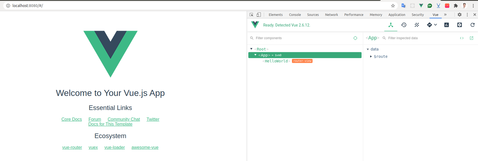 Ngoài ra khi cài đặt Vue Extension trên Chrome, bật tab Vue lên và kết quả cho chúng ta một cây Component như hình dưới.