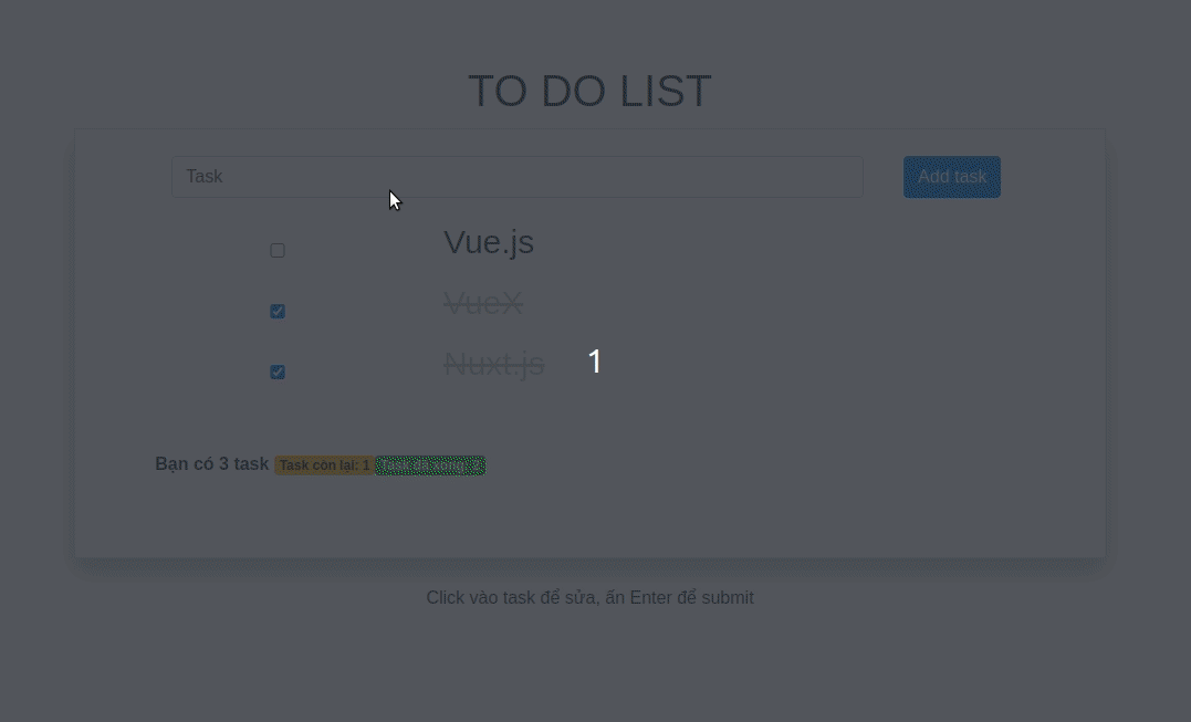 <span> Click vào task để sửa, ấn Enter để submit </span>