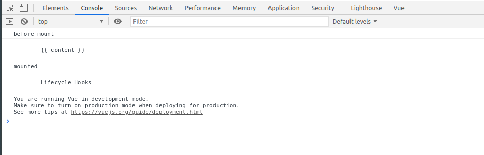 console.log(this.content) // khi này this.content trả về "Lifecycle Hooks" vì quá trình observe data, thiết lập event đã hoàn thành.