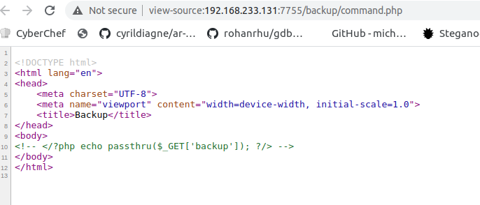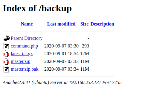 [13:32:32] 301 -  326B  - /backup  ->  http://192.168.233.131:7755/backup/