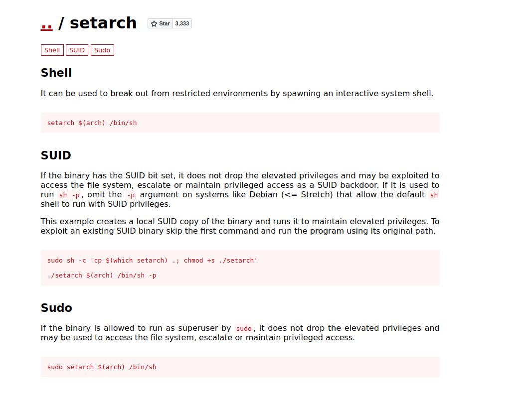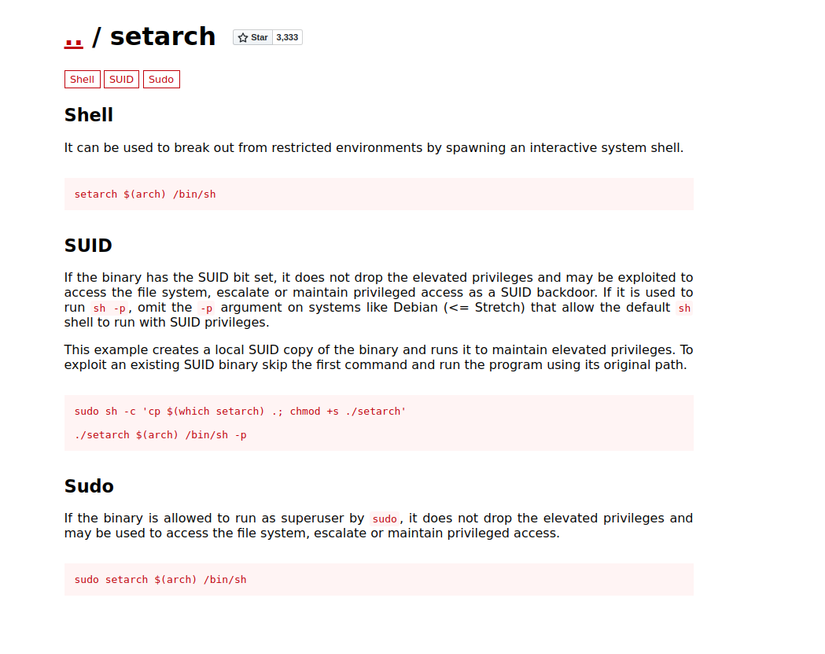 Thử tìm kiếm file này trên gtfobins, có thể thấy file này cho phép ta leo lên root nếu được set suid: