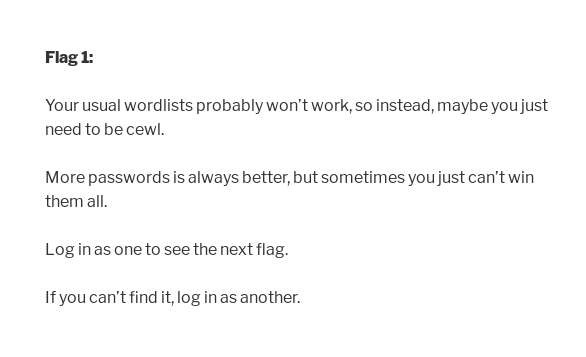 cewl, đây là 1 tool trên kali tạo list mật khẩu thôi. Chắc là sử dụng cái này, chạy nó lên thôi