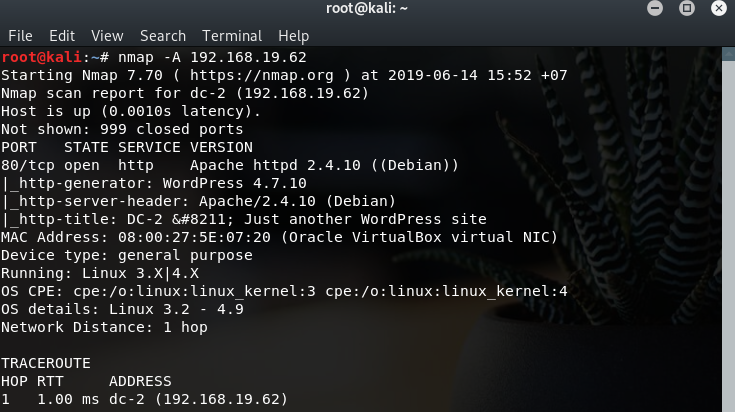 Sau khi xác định được địa chỉ IP rồi, tiếp tục cần xác định xem hệ điều hành, quét các tập lệnh, ... bằng lệnh