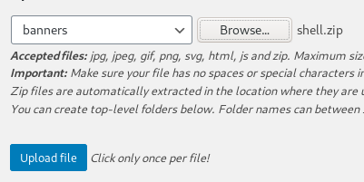 Theo đó, người dùng có quyền upload file dưới dạng zip và sẽ được unzip tự động sau khi up lên. Tuy nhiên, plugin này không hề kiểm tra các tệp trong file zip có nguy hiểm hay không. Do đó, ta có thể upload 1 shell lên trang web và thực thi RCE.
