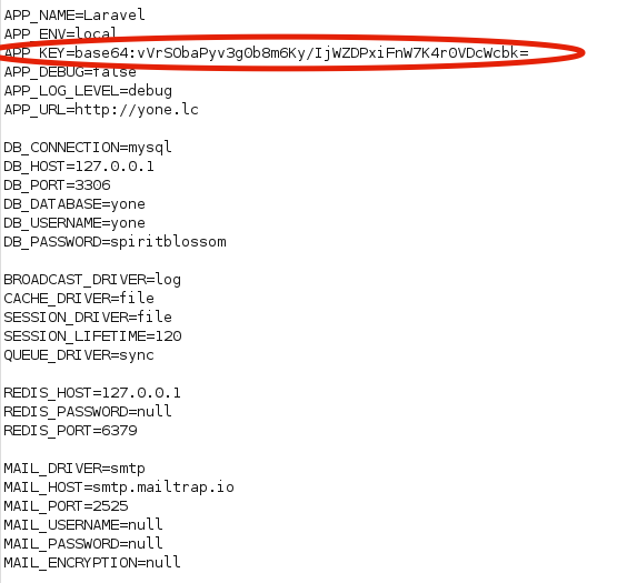 ))). Tuy nhiên ở đây còn thiếu 1 app_key nữa. Phiên bản laravel này còn có 1 CVE khác là CVE-2017-16894. Theo đó thì cấu hình env sẽ có thể tìm được tại .env của web. Thử tìm kiếm chút quả nhiên là thấy liền.