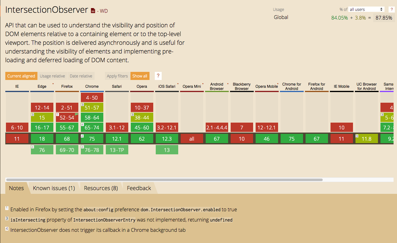 https://www.npmjs.com/package/intersection-observer (318,502 weekly downloads ở thời điểm hiện tại)