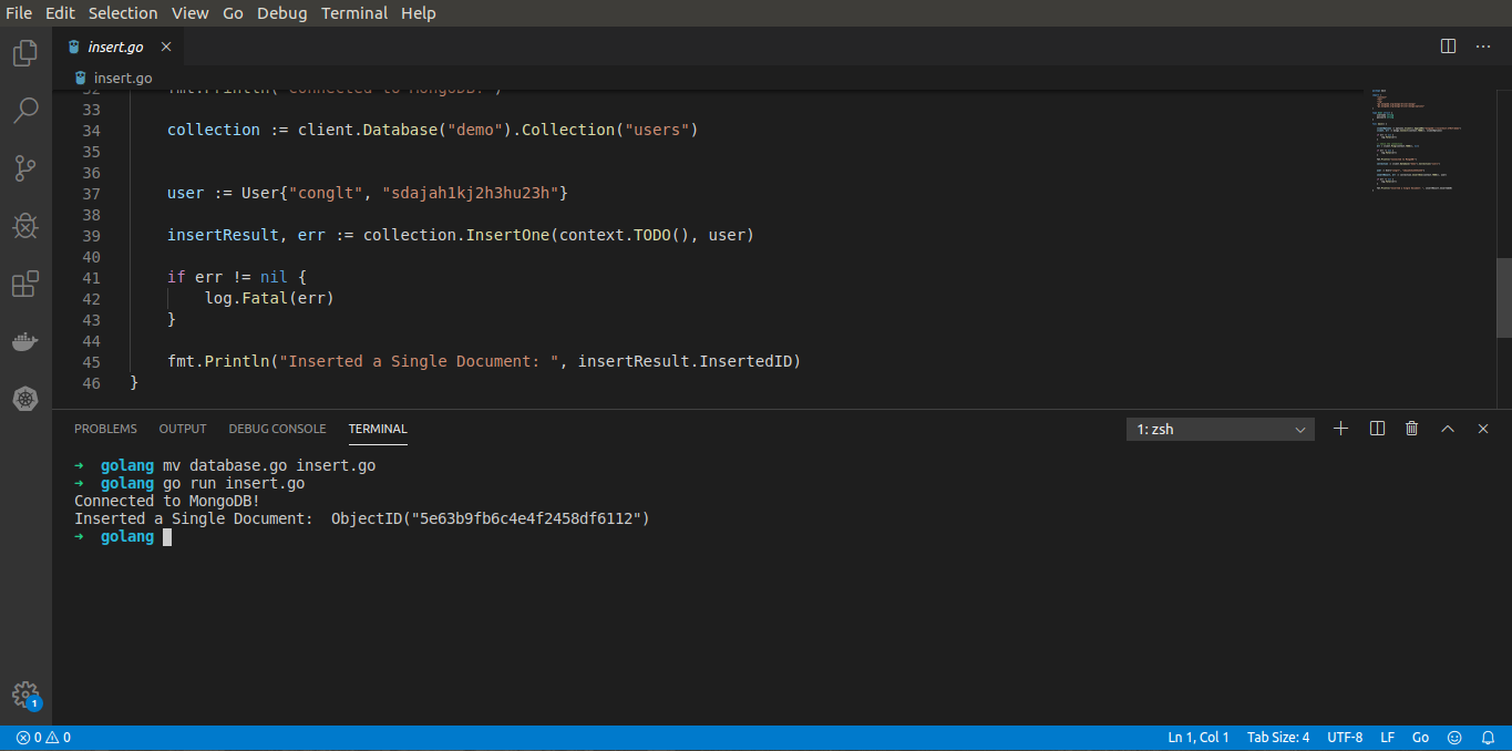 fmt.Println("Inserted a Single Document: ", insertResult.InsertedID)