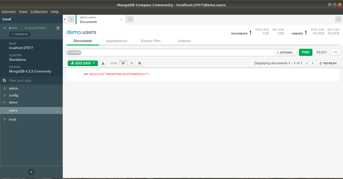 - Sau khi đã kết nối thành công đến mongodb, chúng ta sẽ chỉ định