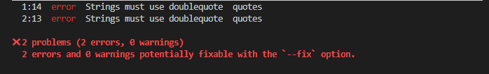 2 errors and 0 warnings potentially fixable with the `--fix` option.