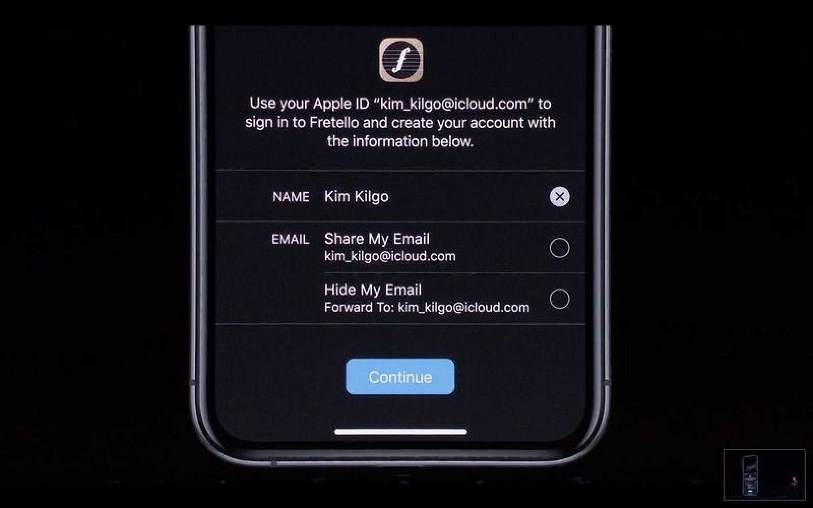 Nếu bạn không muốn chia sẻ email của mình với một ứng dụng hoặc dịch vụ sử dụng Đăng nhập với Apple, Apple thậm chí đã tạo một tính năng "Ẩn email của tôi" được thiết kế để cho phép bạn tạo một địa chỉ email sử dụng một lần duy nhất cho bạn đặt trước địa chỉ email thực của bạn nhưng không tiết lộ địa chỉ email đó cho các ứng dụng hoặc dịch vụ của bên thứ ba.