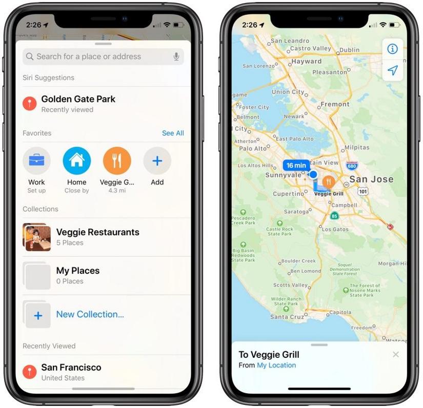 IOS 13 tiếp tục cải thiện tính năng Maps, tính năng này đã được xây dựng lại từ đầu trong IOS 12. Ứng dụng Maps mới,dự kiến sẽ có mặt ở Mỹ vào cuối năm 2019 và các quốc gia khác vào năm 2020, ứng dụng đã cải thiện chi tiết về đường xá,bãi biển, công viên, toà nhà v.v.