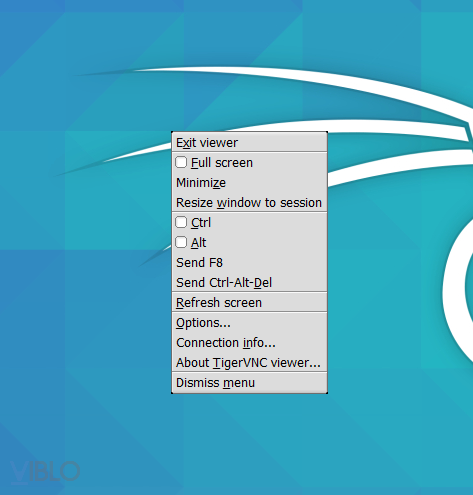 Mặc định nó ở chế độ fullscreen nên các bạn sẽ hơi lúng túng trong việc mình muốn quay trở về giao diện Windows như thế nào. Tuy nhiên chúng ta có thể ấn nút F8 để hiện thị menu của tightvnc để có thể thoát khỏi chế độ fullscreen này hoặc là sử dụng tuỳ chọn khác hay ho hơn