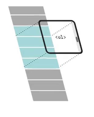 Ta sẽ dùng một cái DOM element nhỏ (có width & height nhỏ), nó sẽ đóng vai trò là cái cửa sổ (window). Người dùng sẽ nhìn qua cái cửa sổ này để nhìn thấy dữ liệu.