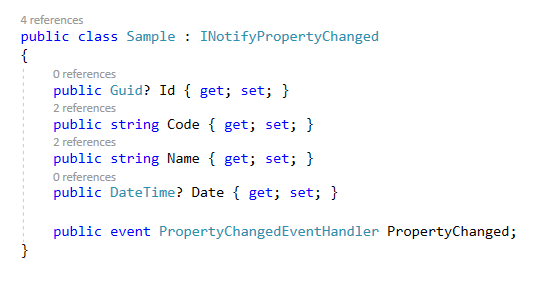 - Thư viện Fody tự động add property notification cho tất cả các class thực thi INotifyPropertyChanged => Khi có bất cứ thay đổi trên BindingList<Sample> thì gridControl sẽ nhận được thông báo và tự động cập nhật dữ liệu mới thấy đổi trên lưới