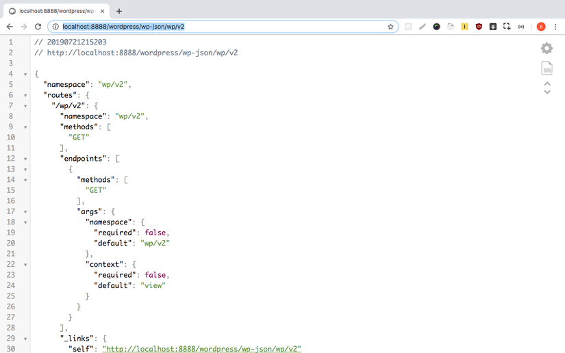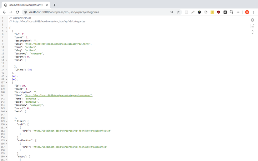 Giờ bạn trỏ đường dẫn trên link thành như này "http://localhost:8888/wordpress/wp-json/wp/v2"