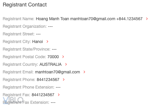 Trang này lưu thông tin đăng ký tên miền khá kỹ. Thông tin về email đăng ký tên miền mà chúng ta cần tìm cũng được ghi lại luôn. Và đáp án chính là manhtoan70@gmail.com