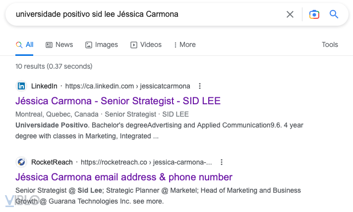 Tiếp tục tìm kiếm với cái tên Jessica, vì profile Linkedin vẫn chưa xem được địa chỉ email. Giờ đã có tên rồi thì thông tin tìm kiếm được sẽ cụ thể hơn nhiều.