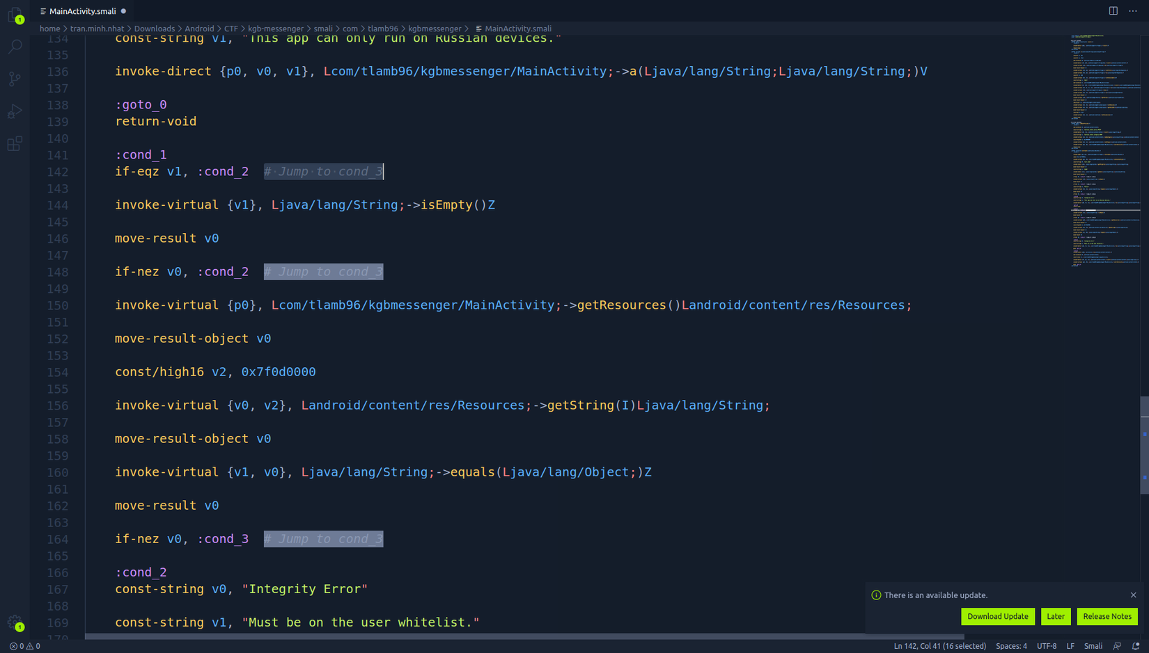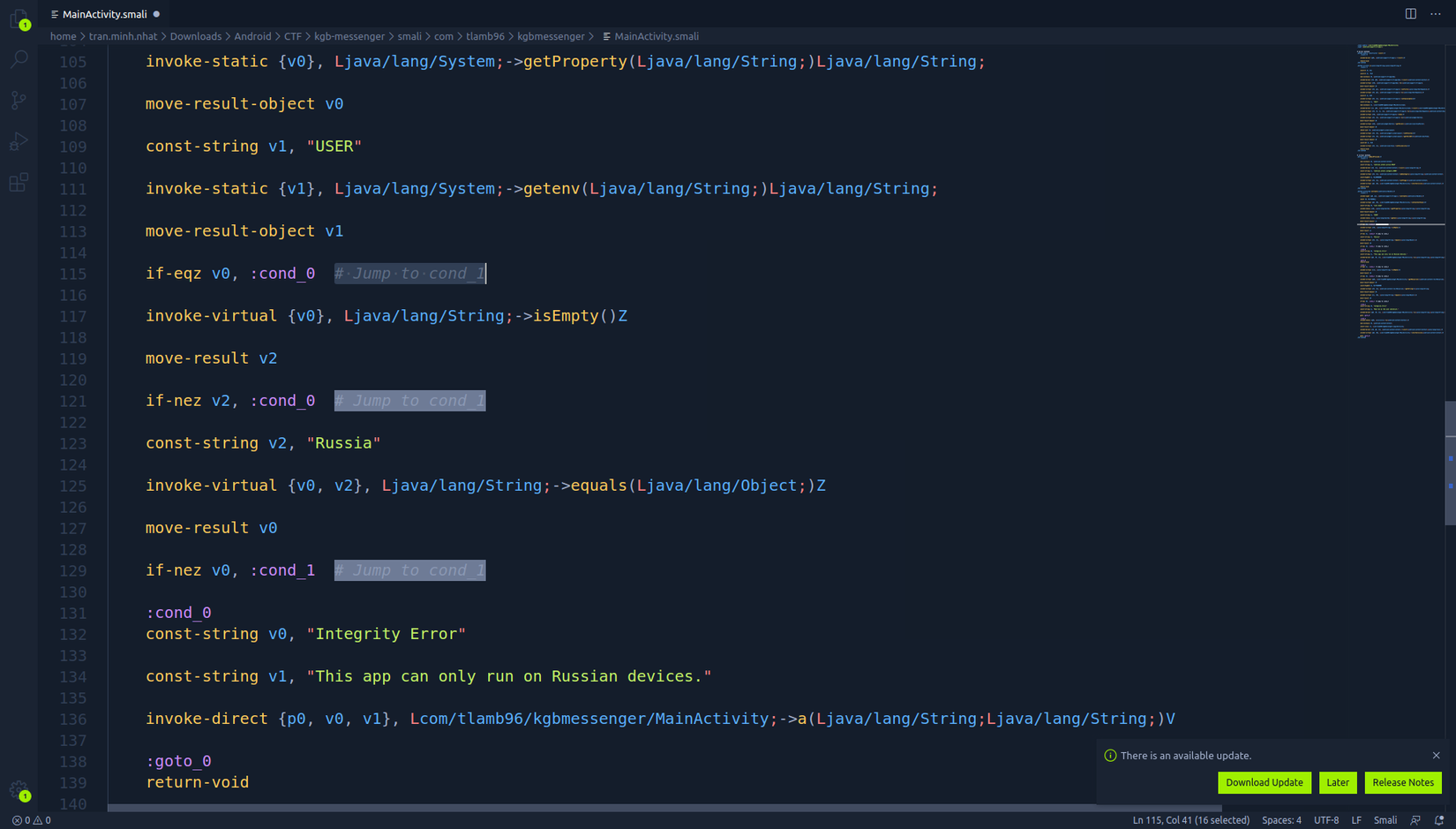 Xác định được target rồi thì câu chuyện lại đơn giản quá. Lệnh smali if-nez sẽ thực hiện so sánh và nhảy đến đoạn code xác định.