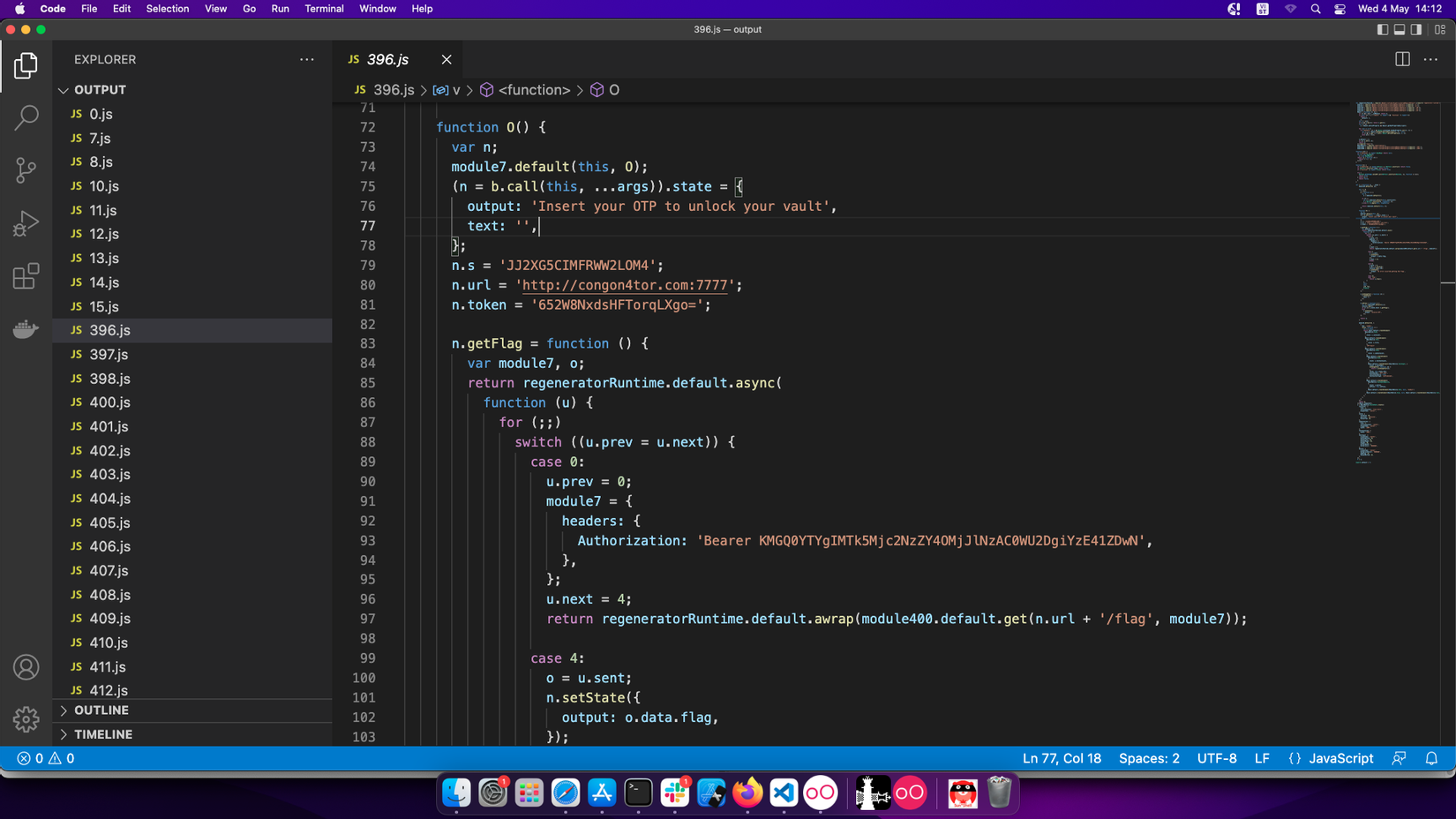 Khi đọc qua mã nguồn thì chúng ta có thể phát hiện được tệp tin 396.js chứa rất nhiều thông tin thú vị.