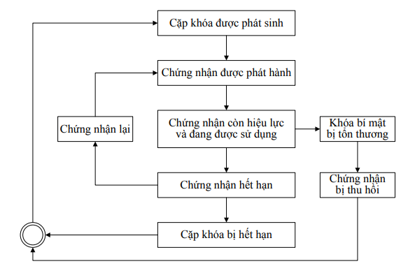 - Cặp khoá công khai/bí mật hết hạn -> Chứng nhận hết hiệu lực