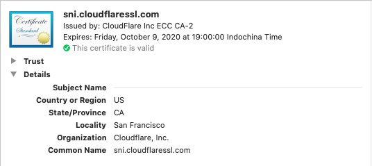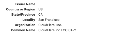 Tiếp theo là thông tin về thực thể phát hành. Tuy nhiên trong trường hợp này, chính CloudFare phát hành chứng chỉ này nên các thông tin không thay đổi ngoại trừ Common Name là tên của CA thay vì là URL như ở trên