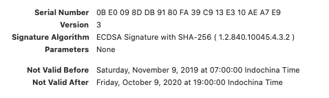 Ngoài ra thì còn những thông tin khác như version và validity period. Ta cùng check xem chúng thế nào ở dưới đây.