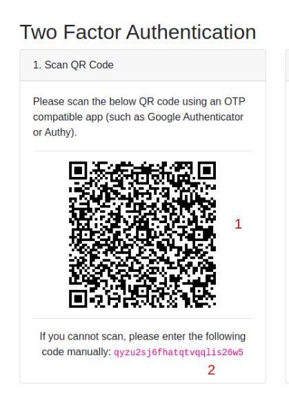 <p>Please scan the below QR code using an OTP compatible app (such as Google Authenticator or Authy).</p>