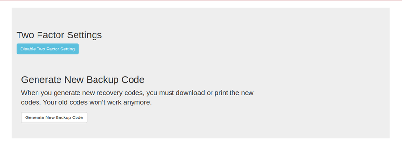 Chức năng tạo mã backup code mới cho những user đã enable two factor, về cơ bản là giống với việc tạo mã backup code khi bạn thực hiện scan qrcode