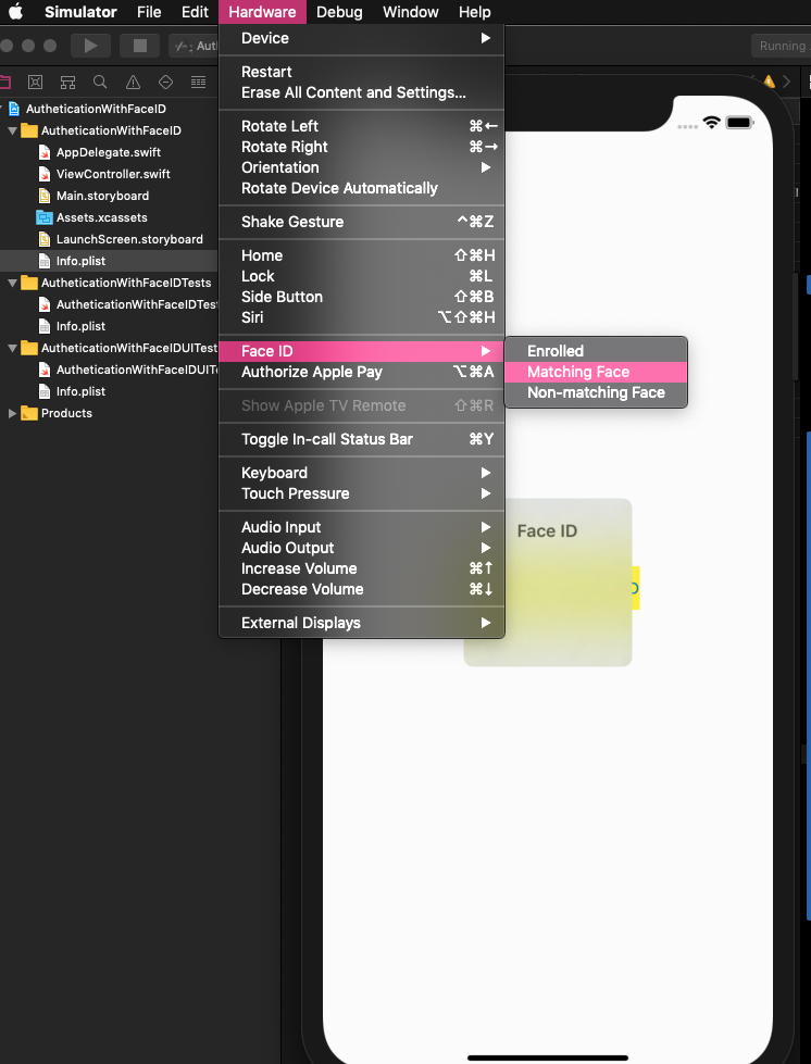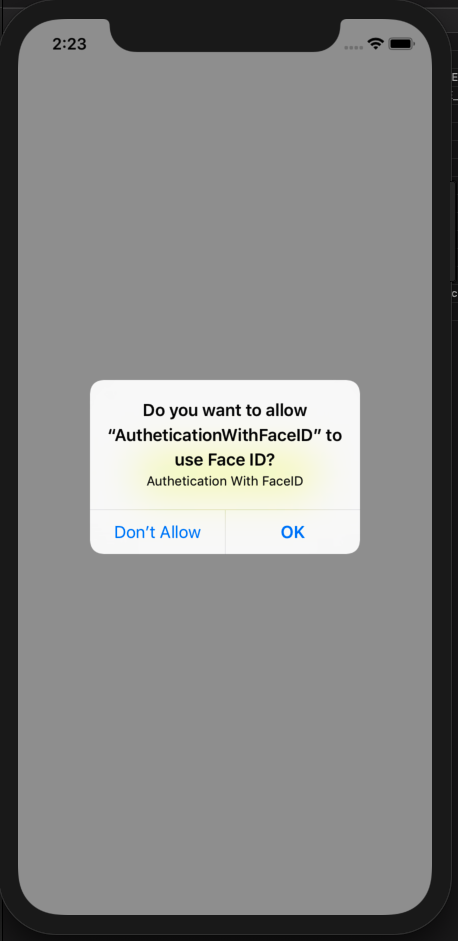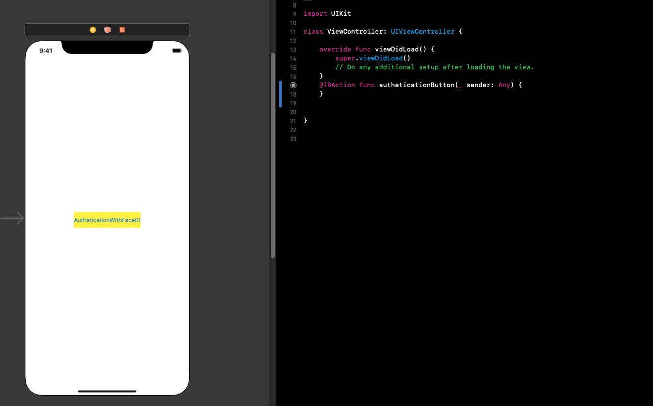 Tạo project mới có một button AutheticationWithFaceID: