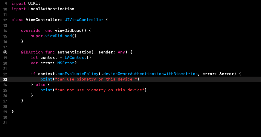 Import thư viện LocalAuthentication: