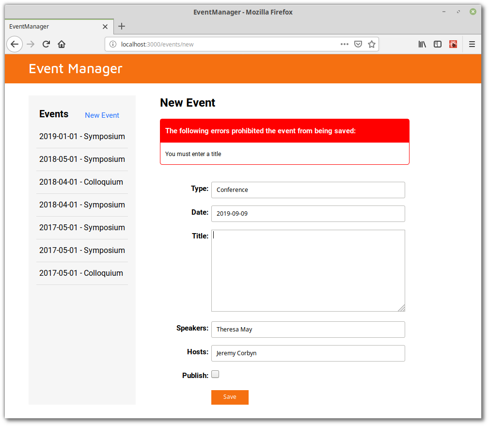 <h3>The following errors prohibited the event from being saved:</h3>