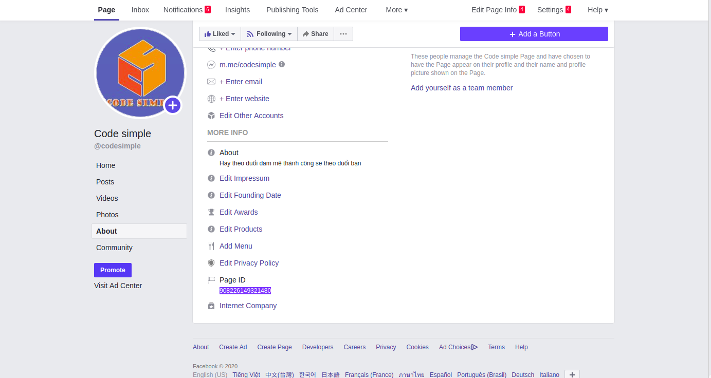 Tiếp theo là lấy id page. thì mình làm theo các bước hướng dẫn của fb :