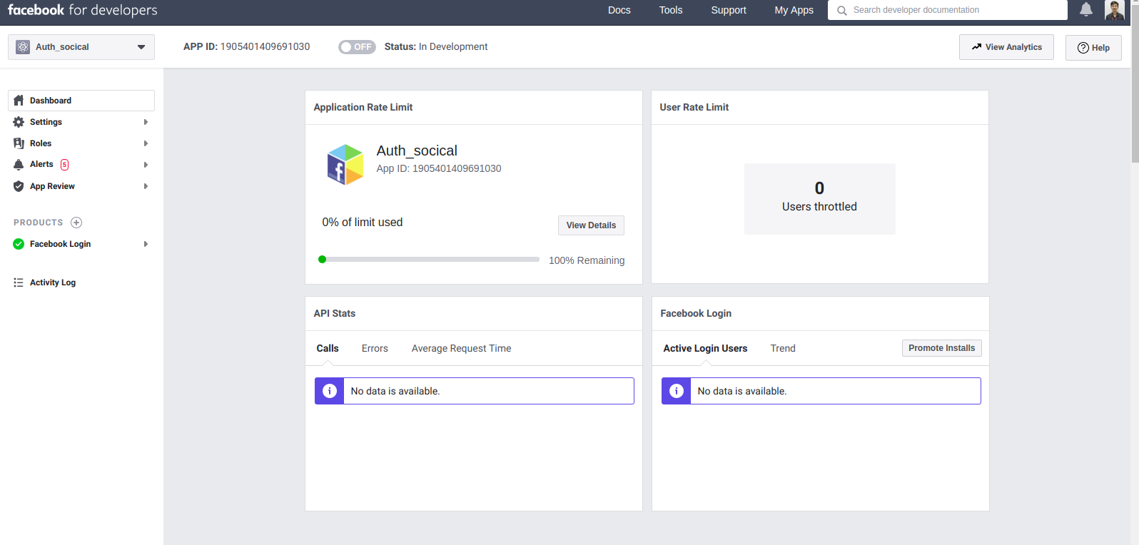 Các bạn có thể vào trang https://developers.facebook.com để tạo 1 facebook app. ở đây mình đã tạo sẵn 1 app.