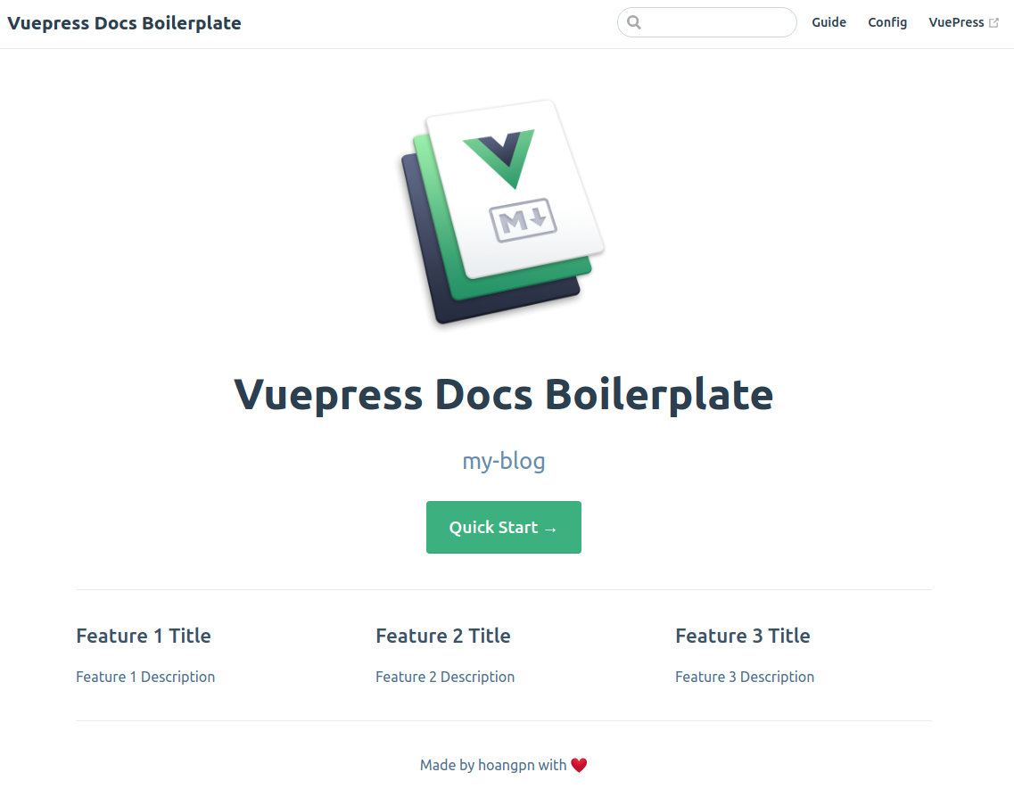 Loanh quanh 1 hồi thì đúng là vuepress không làm mình thất vọng, template của thằng này thì nói thật không thiếu, bạn chỉ cần chọn cái thích hợp với mình thôi. Việc còn lại để vuepress lo