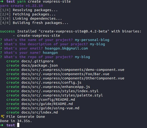 Okay, bắt tay vào xây dưng blog của mình thoai nào(Sau khi đã chọn đươc vuepress làm điểm tựa