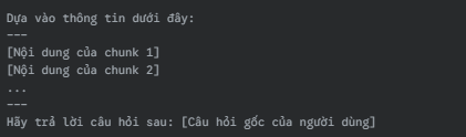 - Context Augmentation: k chunk văn bản được truy xuất này (gọi là "context") được lấy ra.