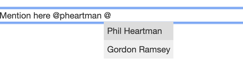 Bây giờ mình đã làm xong chức năng mention với các config default của tribute.