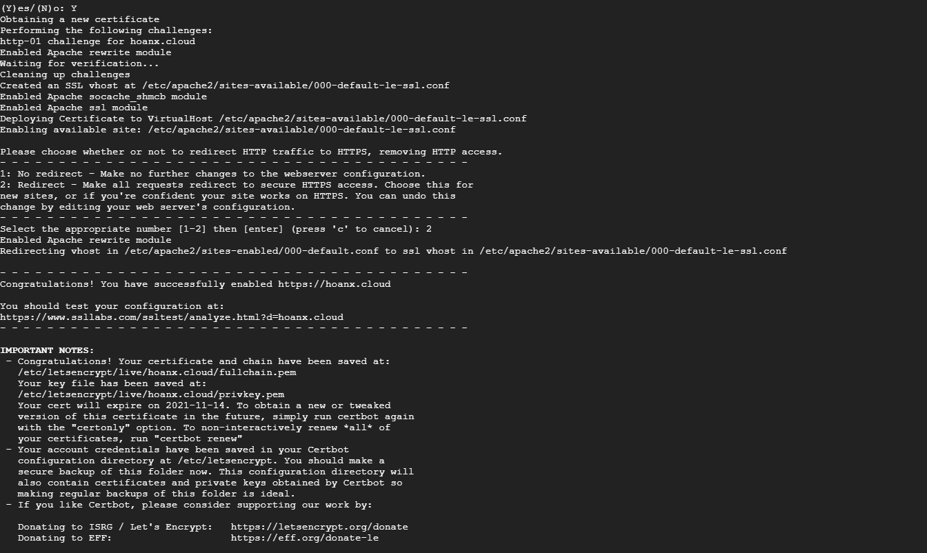 Quá trình ban đầu cài đặt nếu thành công, khi truy cập vào Domain ta sẽ nhận được giao diện sau