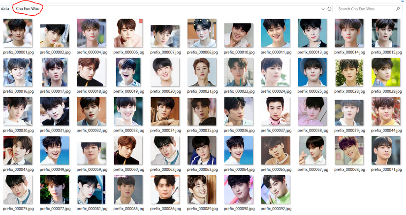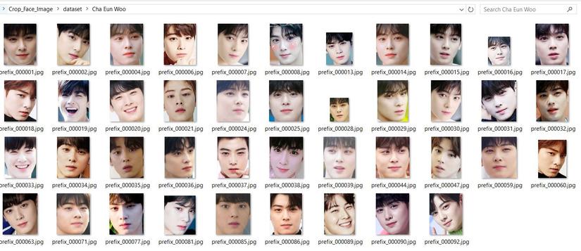 Cũng giống như trên, khi được tool xử lý sẽ trả về các ảnh chỉ có phần khuôn mặt, giữ nguyên tên file ban đầu. Một thư mục chỉ chứa ảnh của Cha Eun Woo