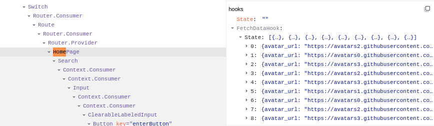 Như vậy là ta lại nhận được kết quả ban đầu, tuy nhiên nếu bạn bật lại React-dev-tool lên và xem ở component HomePage sẽ thấy như sau: