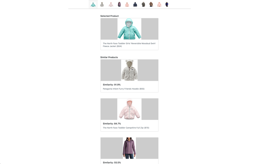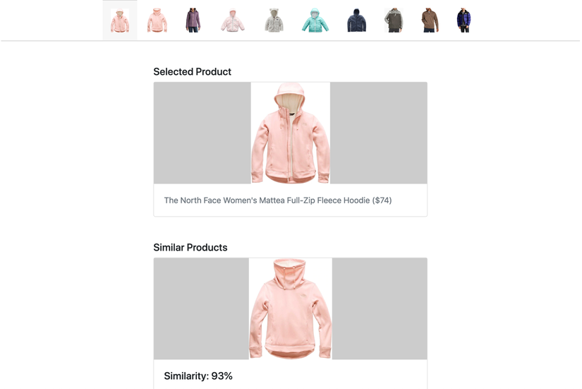 Chúng ta sử dụng các đặc tính của sản phẩm, trường hợp này là thời trang(chất liệu, màu sắc, độ ấm,…), giá và loại sản phẩm làm cơ sở cho việc tính toán độ tương đồng. Các thuật toán sử dụng là [Hamming Distance]