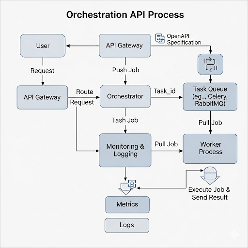 Asynchronous Task Handling: dùng Task Queue (Celery + RabbitMQ/Redis) cho các request phức tạp, trả về task_id để client poll hoặc webhook callback