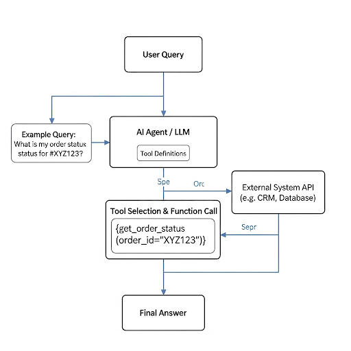 Agent giờ không chỉ trả lời mà còn cần tương tác với hệ thống ngoài (CRM, ERP, tồn kho…). Các thành phần: