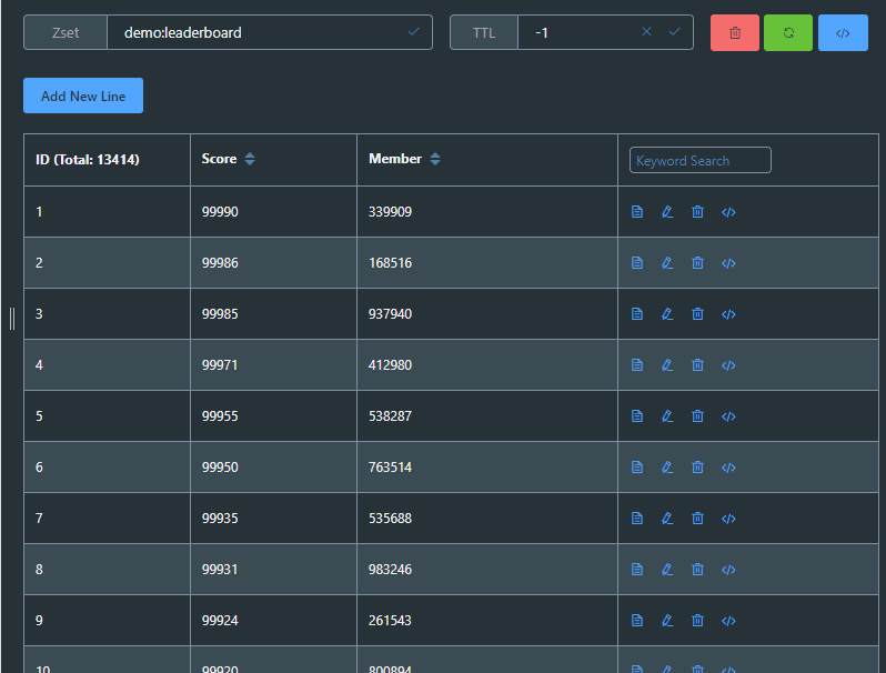 - 1 ZSET key để lưu score (điểm số) của người chơi, ZSET trên redis sẽ tự động sắp xếp data theo điểm số.
